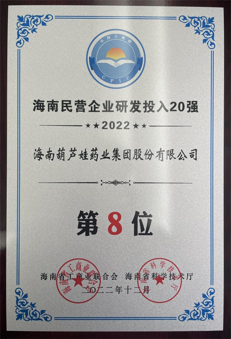 12月23日,2022海南民营企业50强和研发投入20强发布会在海口举行。会上发布了“2022海南民营企业50强”“2022海南民营企业研发投入20强”榜单和分析报告。JDB电子药业再次荣登两榜,在海南民营企业50强榜单中位列第25位,较去年上升8位,这也是公司连续三年登榜;在海南民营企业研发投入20强中位列第8位,较去年上升7位。