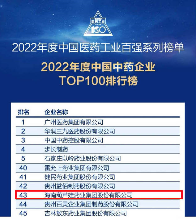 JDB电子药业集团连续4年荣登“中国中药企业TOP100排行榜”,排名上升至第43位