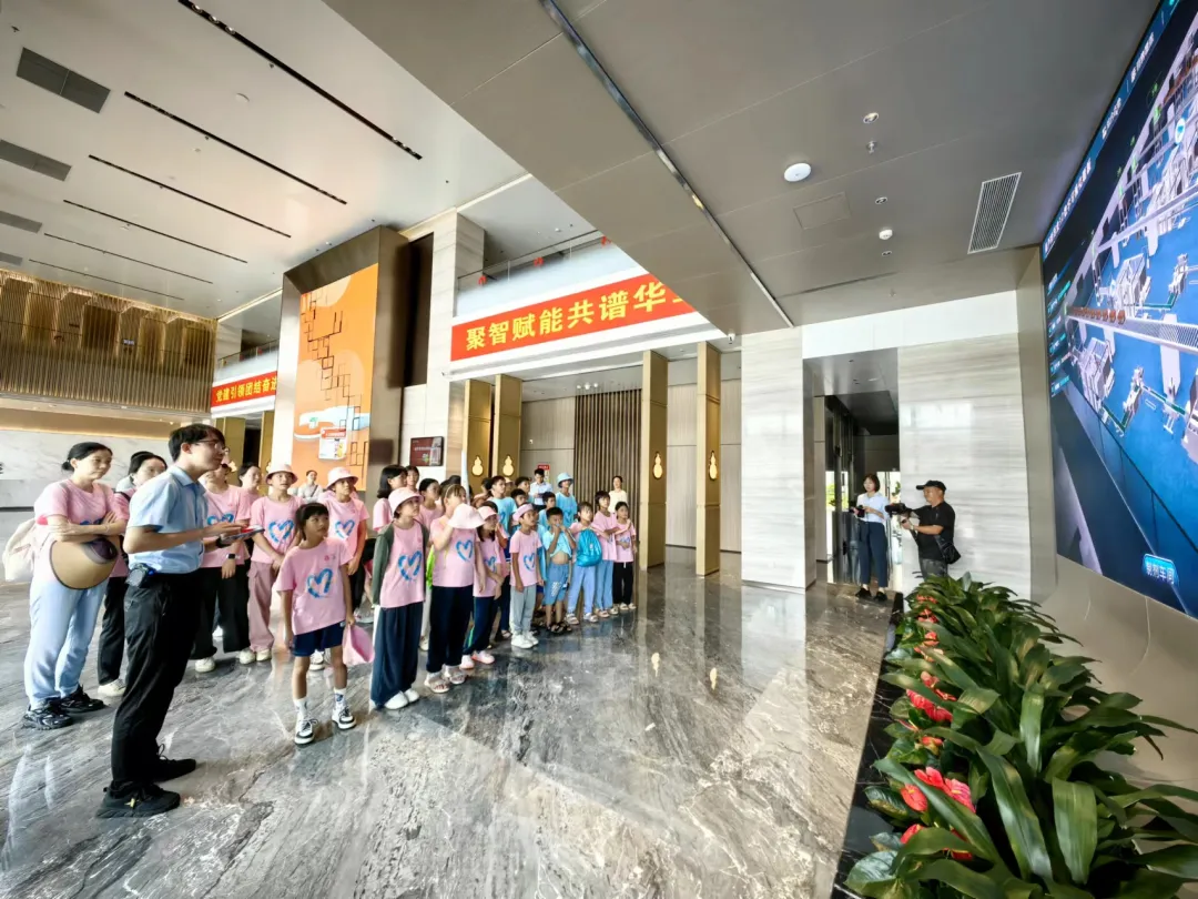 活动一开始,孩子们便迫不及待地踏入了JDB电子药业集团的大厅。3D数字化看板上的生动画面,让孩子们仿佛置身于一个充满科技与创新的现代制药工厂。他们瞪大眼睛,好奇地观察着每一条生产线、每一台设备,听着讲解员介绍JDB电子药业的儿药发展历程。